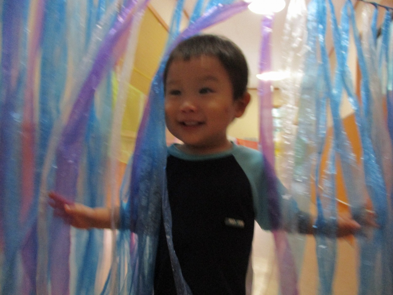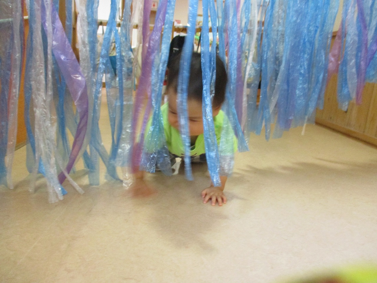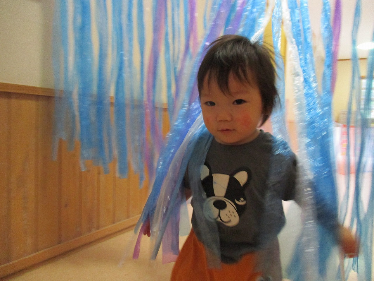 すずらんテープをくぐったり、「ばあ!」と顔を覗かせたりすることが楽しい!!子ども達でした。