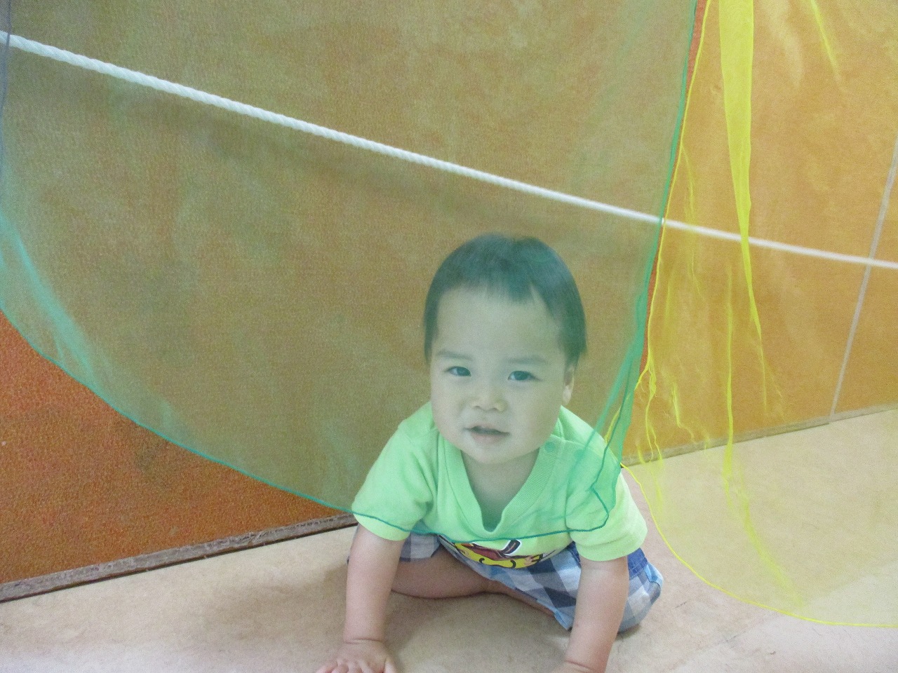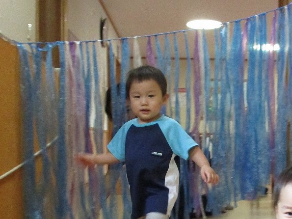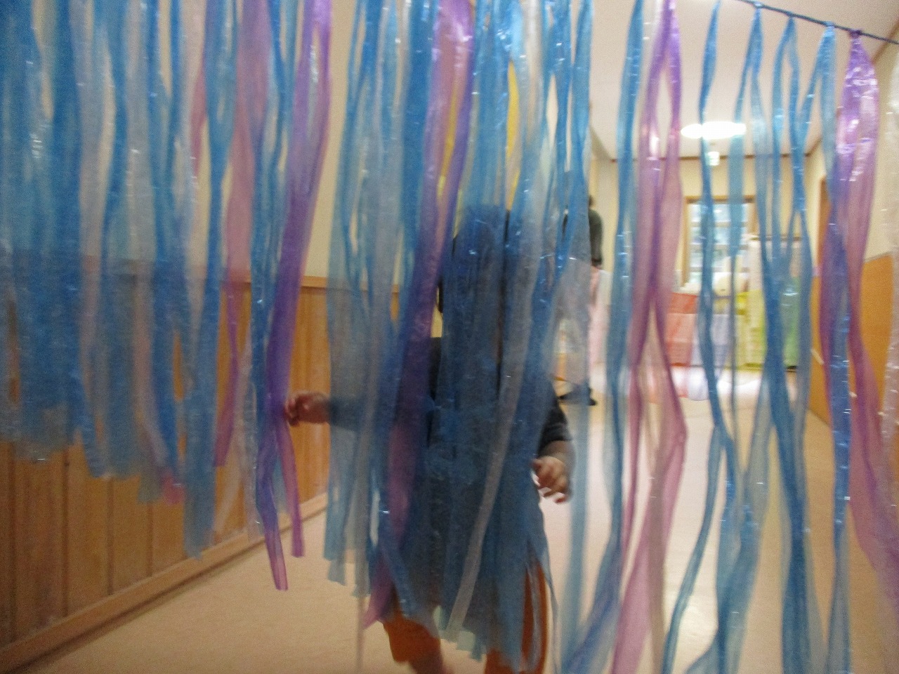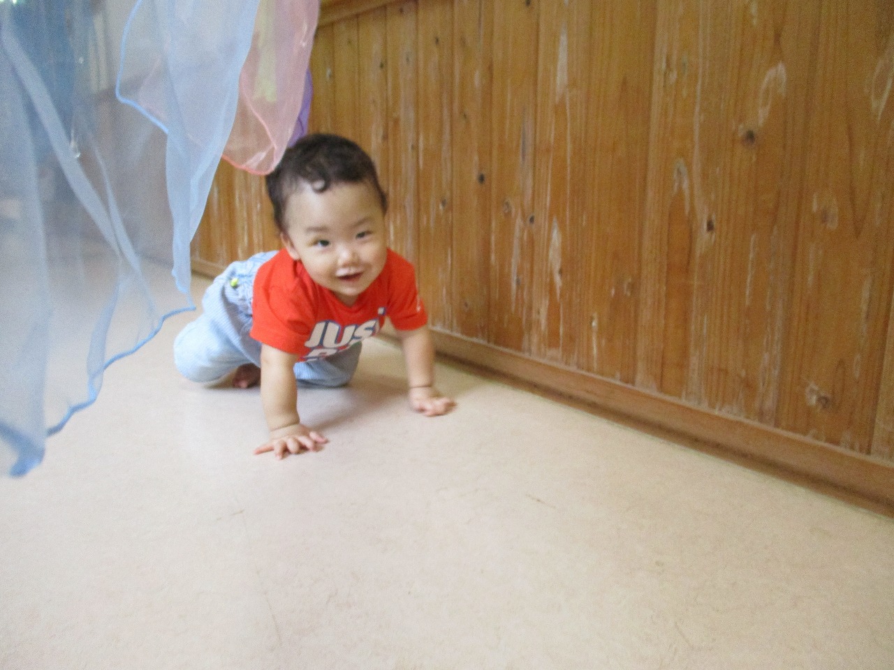 すずらんテープをくぐったり、「ばあ!」と顔を覗かせたりすることが楽しい!!子ども達でした。