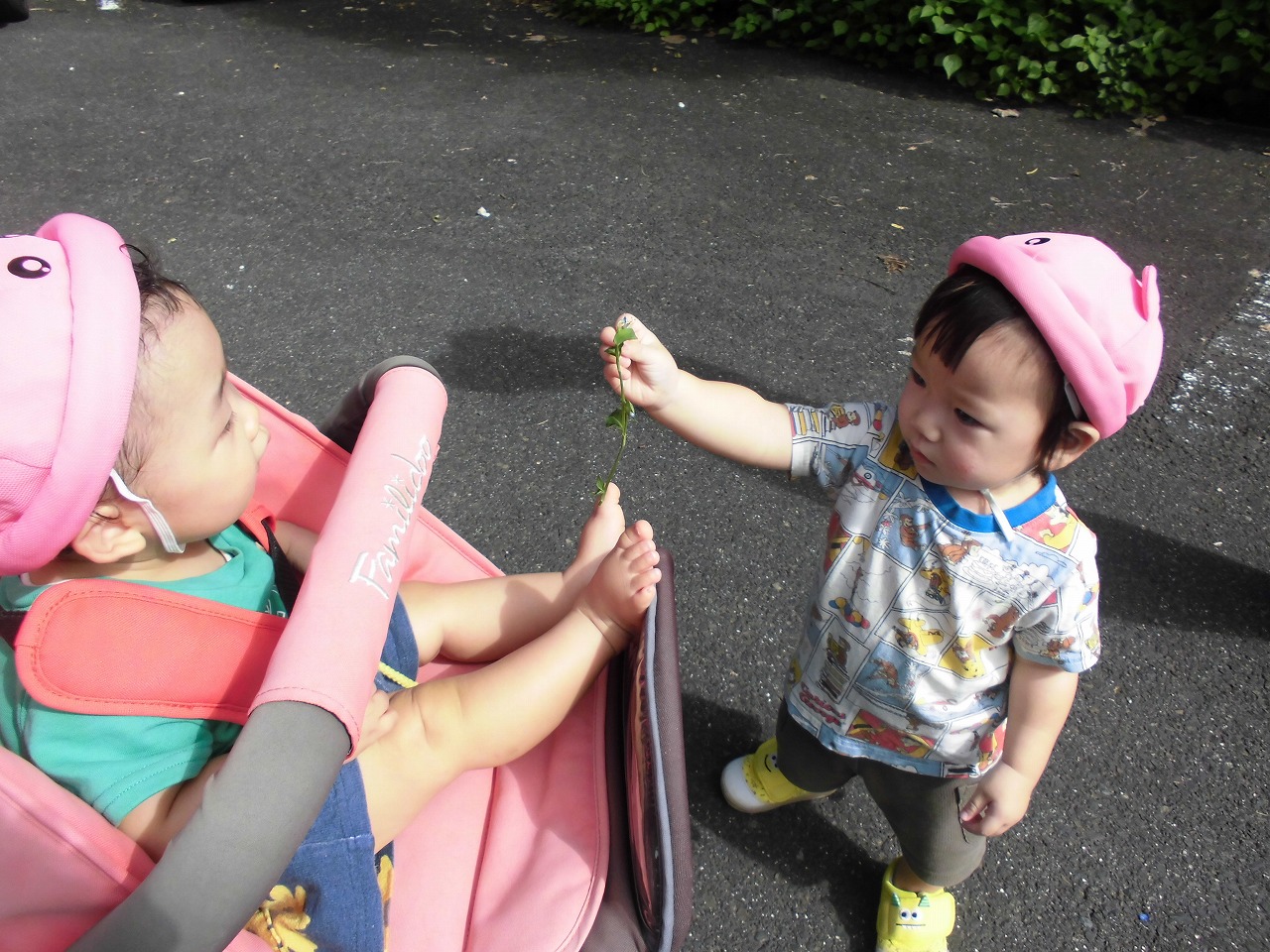 心地よい秋の風に誘われて、テラスに出たり保育所の周りを散歩したりして秋を感じています。