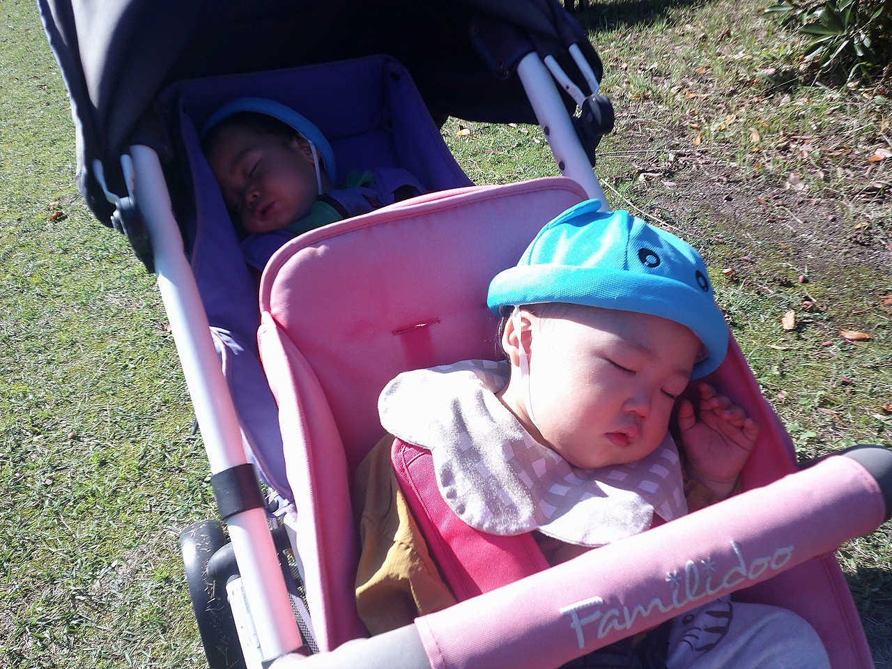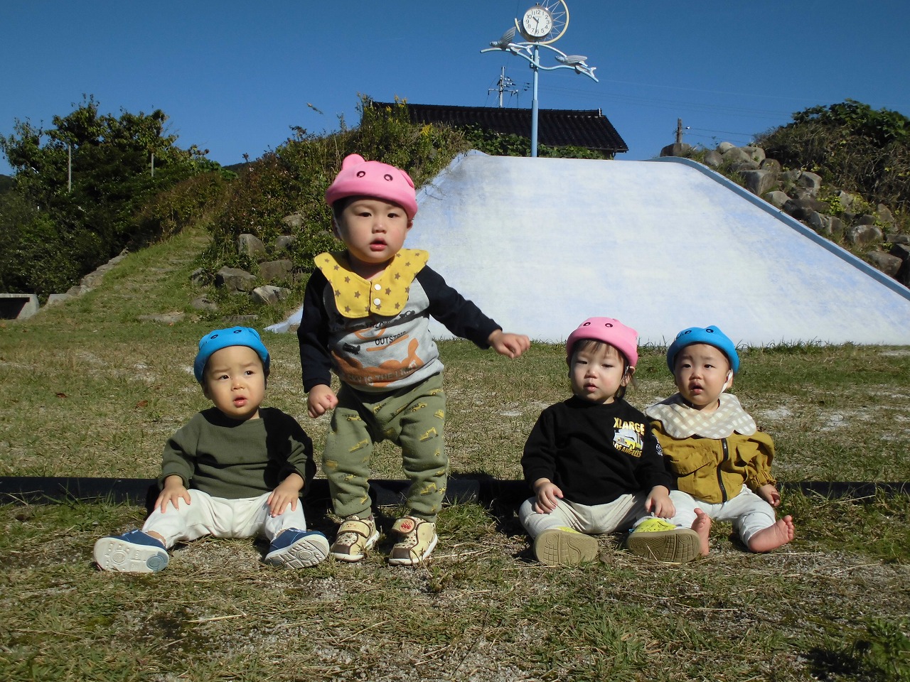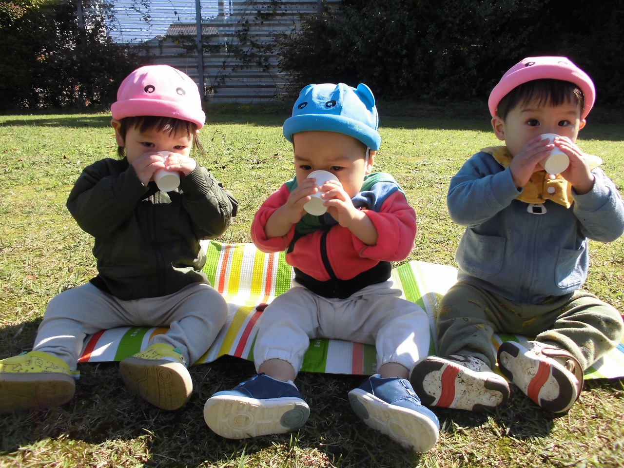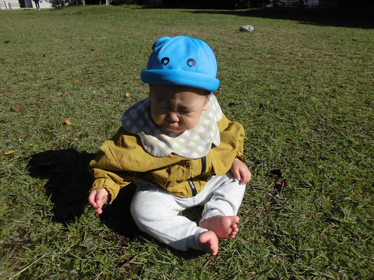 天気がいい!暖かい!絶好のお散歩日和!0歳児はベビーカーに乗って神名火公園まで行きました。「あ!」「お?!」と目に映るものを指さし「あれはなんだ?」と保育士やお友だちに話しかけたり、心地よい風に眠気を誘われたり、金木犀の良い香りに癒されたりしながら、みんなで元気に公園まで行きました。