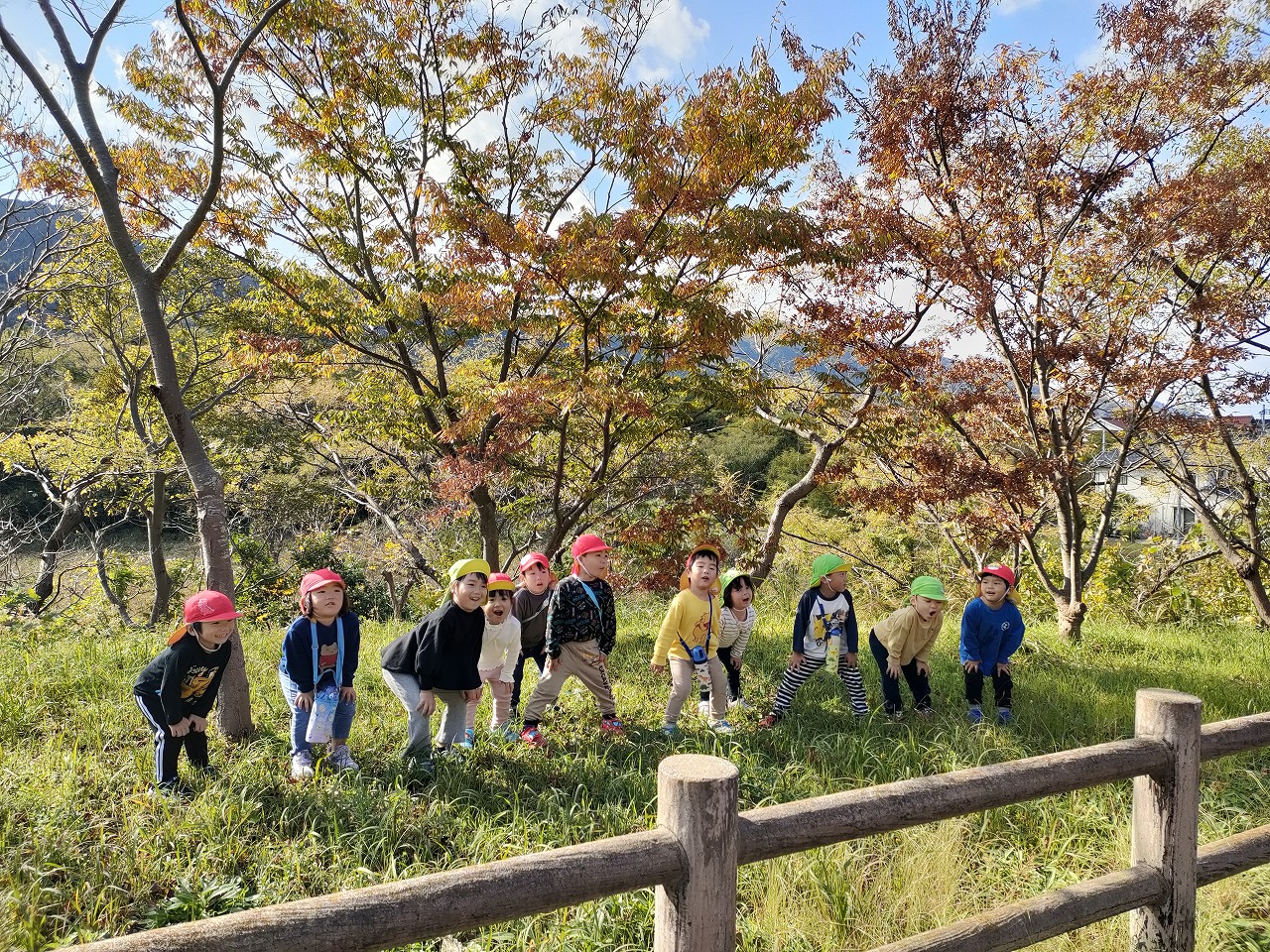 ひとやすみしてほっと一息お茶を飲んだり、空を見上げて「ヤッホー」と声をあげたりして秋の心地よさを感じる子ども達でした。