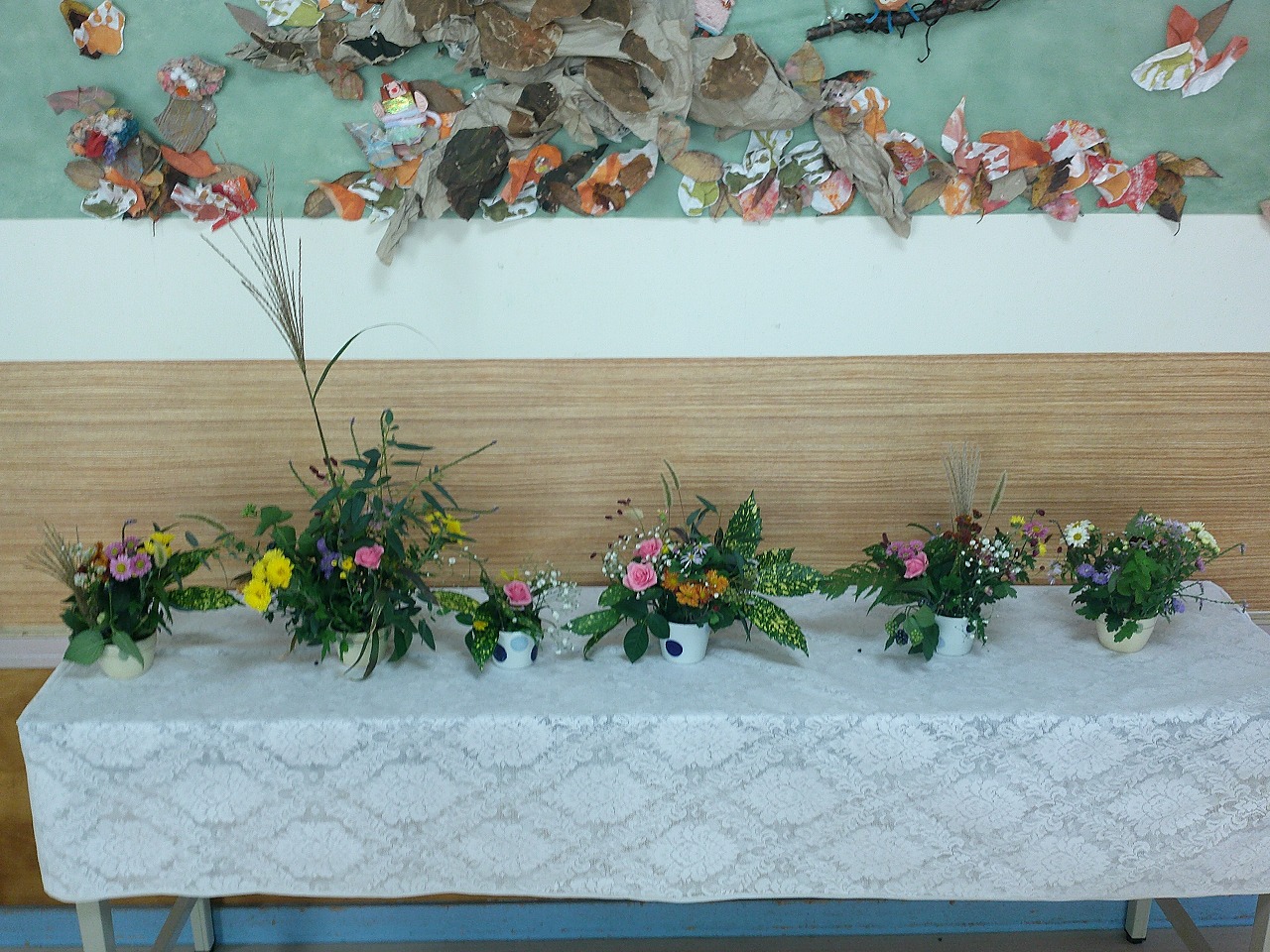 生ける子ども達の姿は真剣そのもので、花の色合いや長さを揃えてから生け、「すてきじゃない!けっこう」と喜びが感じられました。