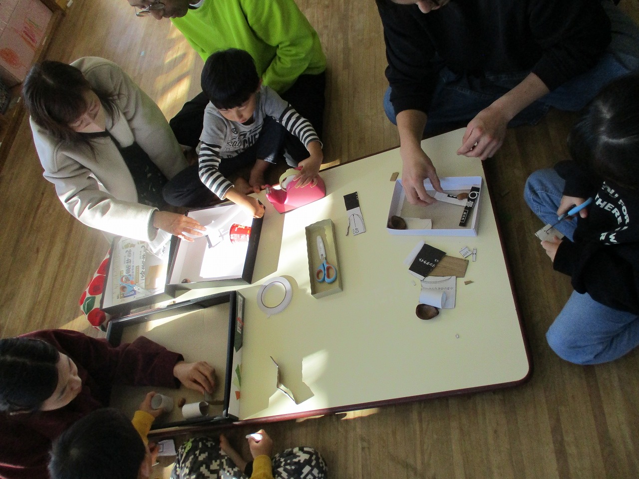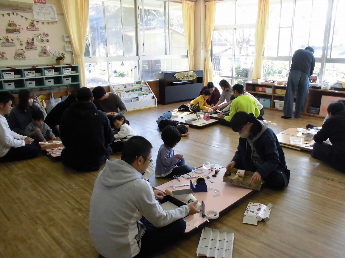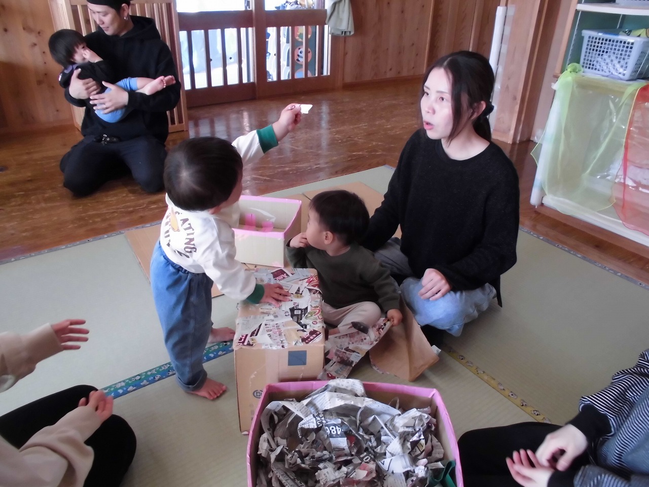 おうちの方と一緒に段ボール遊びや紙遊び「みて、みて~」