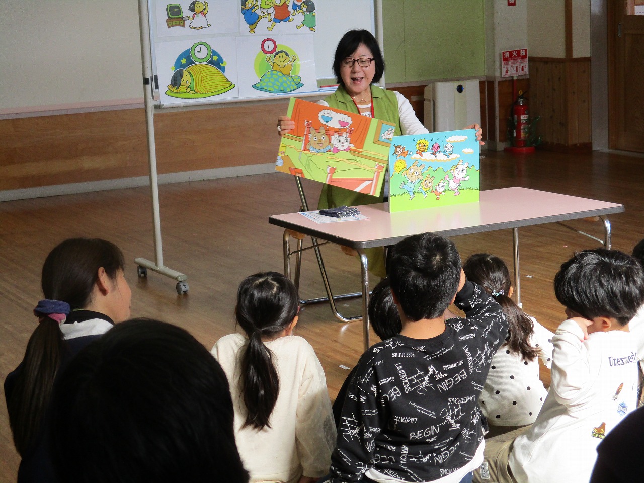 育児講座は、島根の子どもとメディア研究会より大岩睦子先生をお招きして、メディア研修を行いました。3歳児以上の子ども達も一緒に参加して、早寝早起きの大切さ、手伝いをすることの楽しさなどを教えていただきました。