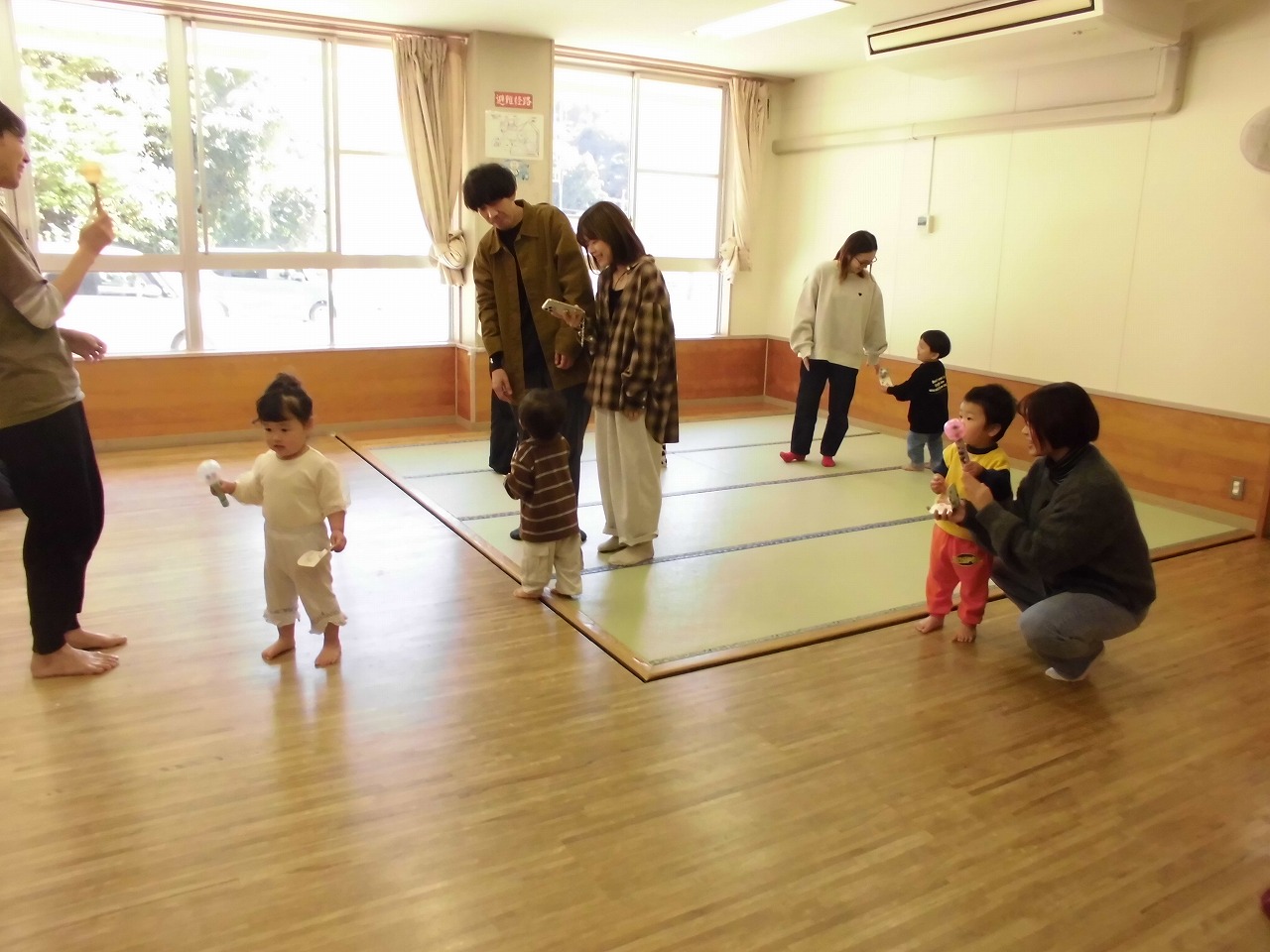 各クラスで一緒に遊んだり、秋の自然物を使って製作遊びを楽しんだり、季節の歌を歌ったりしました。
