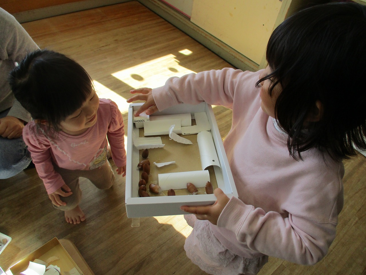 散歩で拾ったどんぐりなどを使って『マラカス』や『カスタネット』を作ったよ