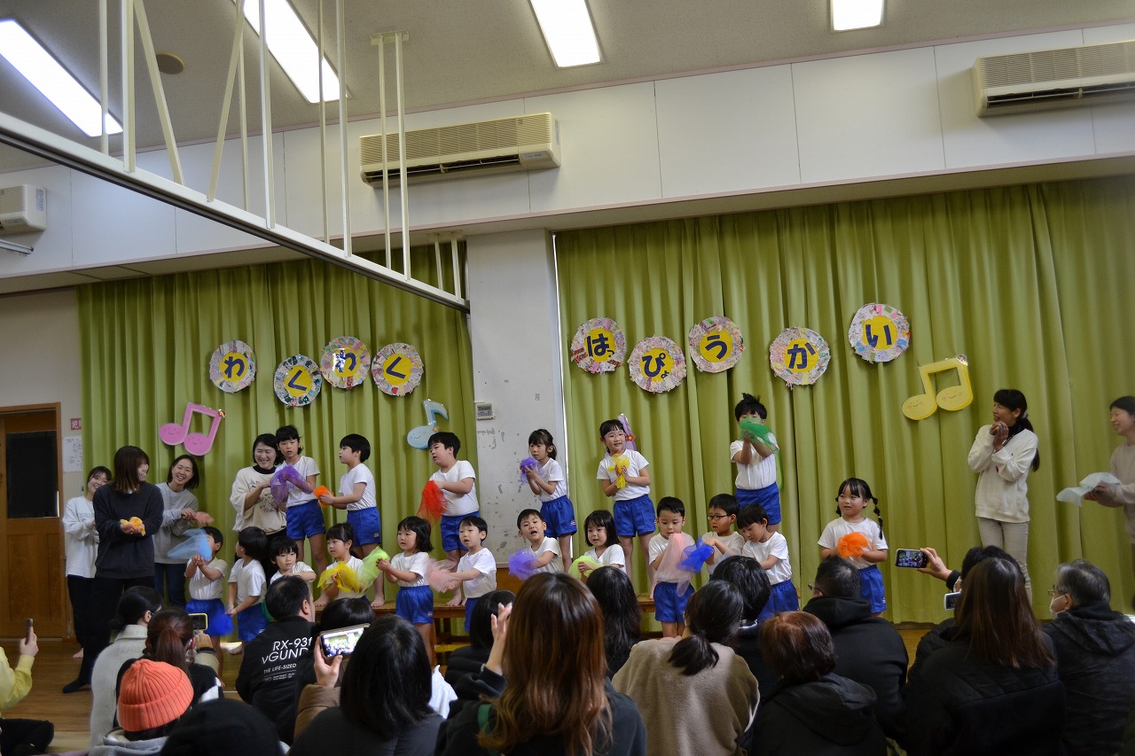 たくさんの保護者の方の暖かい眼差しと拍手の中、全クラスの子ども達がそれぞれの個性をしっかり出しながら“発表会”の場でひとりひとり輝くことができました。