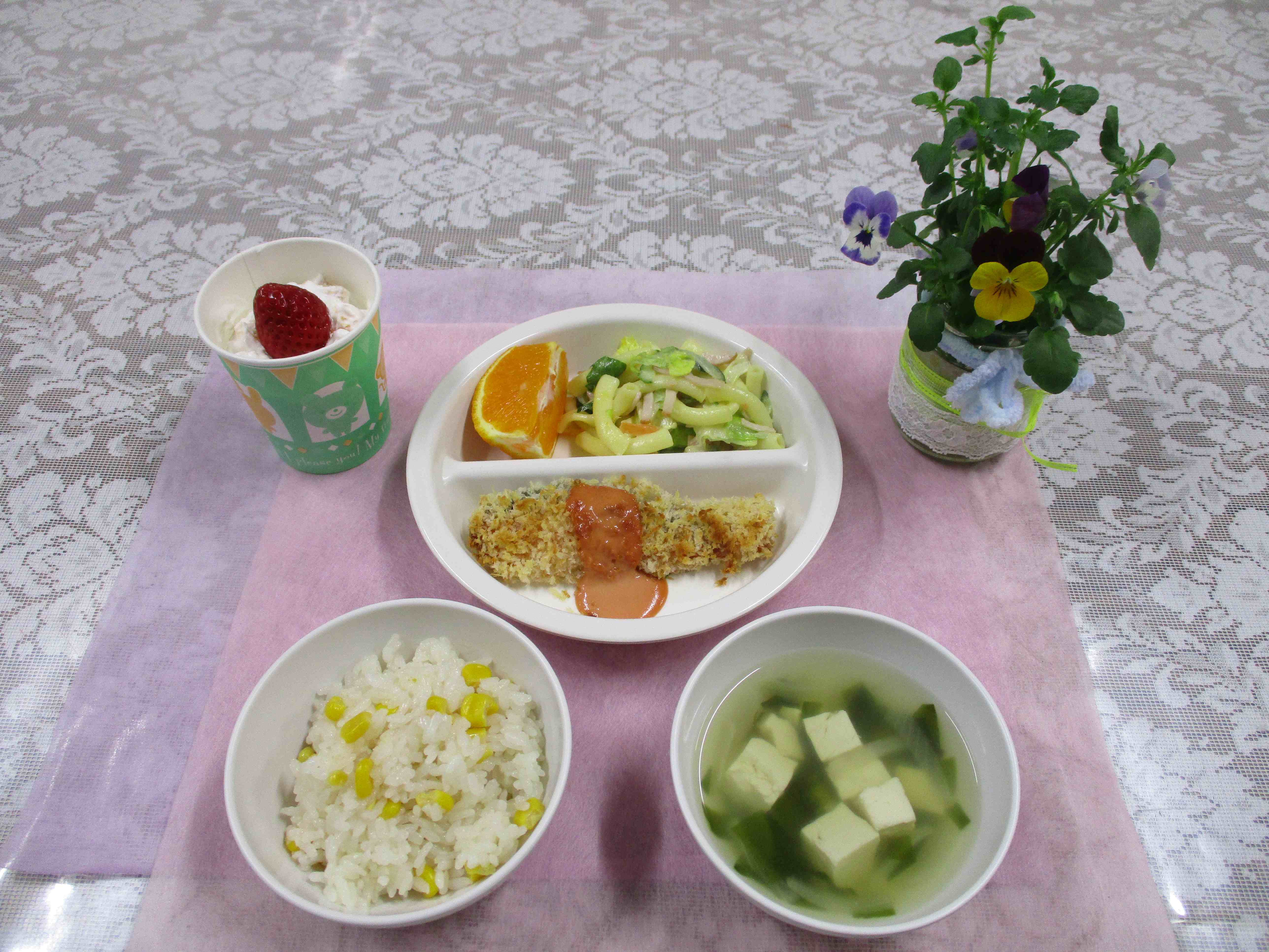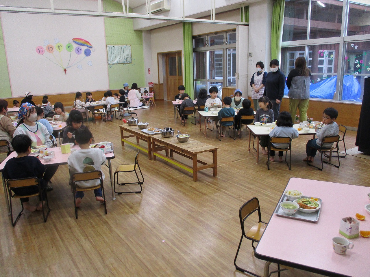 みんなで給食パーティーしたよ。