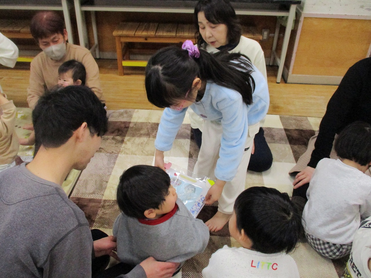 くじら組からは、手作りのフレームを皆に渡しました。「はい、どうぞ」