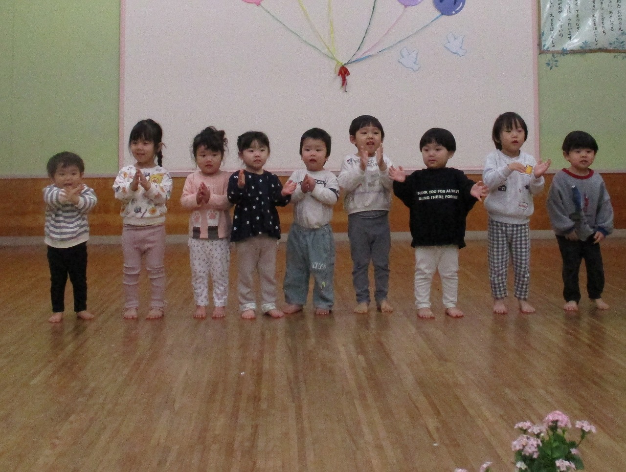 1,2歳児は歌のプレゼント。可愛く振り付けをしながら歌ったよ。