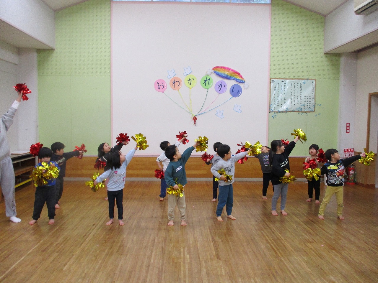 きりん組は、文化祭でくじら組と踊った「ちいさな海賊」をポンポンを持って披露しました。