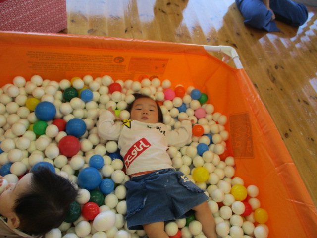 今日のいちごたいむは『ボール遊び』をしました。ボールを転がしてみたり、ボールプールに入ったり、色々なコーナーで沢山楽しみましたよ。