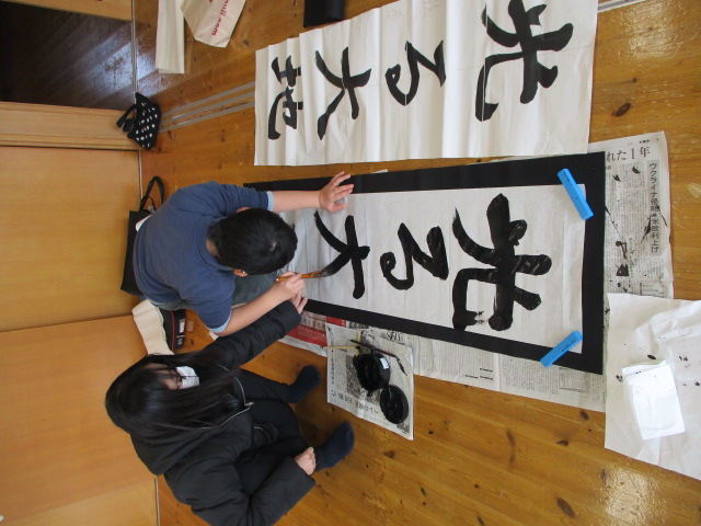 今年初めての児童館活動で「書き初め」をしました。高校生のボランティアの方に手伝ってもらい、みんな一生懸命に書いて力作ができました。