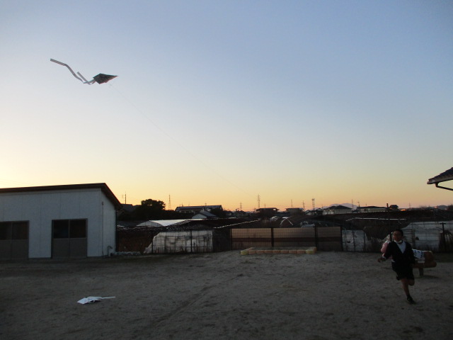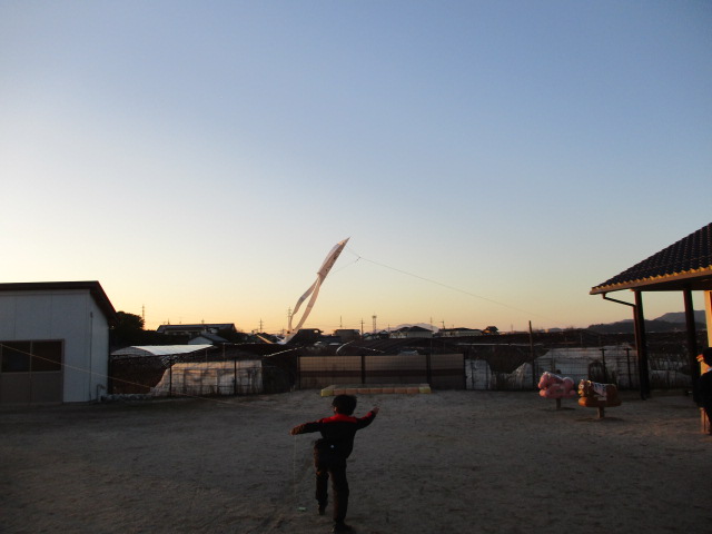 たこ作りをし、たこあげをしました。始めは、一生懸命走って、たこあげをしていましたが、少しずつ風を利用してあげるコツを掴み、たこ紐を操作しながら、たこあげを楽しんだ子どもたちでした。