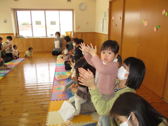 今日のいちごたいむは誕生日会。お子さんの可愛いところやエピソードを伝え合ったり、一人一人にお歌のプレゼントをしたりして、和やかなひと時を過ごしましたよ。これからもすくすく大きくなってね♪