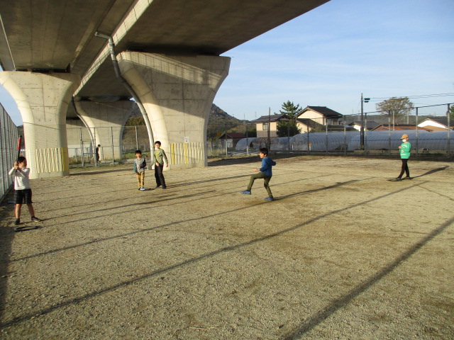 児童館活動で広場あそびでした。天気も良くWBCの影響で野球がしたい!