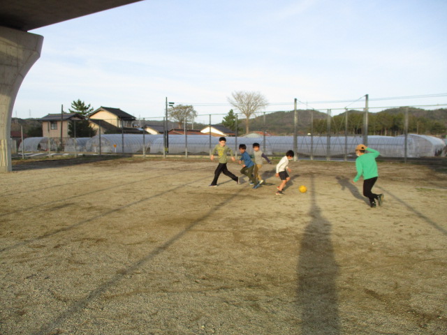 いうことで野球が始まりました。バットにボールが当たると大喜びの子どもたちで盛り上がってました。まだ遊び足りない子どもたちはサッカーもやってましたよ。