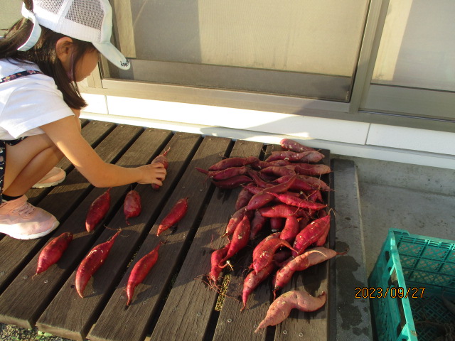 今日は自由遊びでしたが、先週の児童館活動で掘ったさつまいもを洗いました。洗ったさつまいもが乾きやすいように、きれいに並べ干しててくれました。美味しい焼き芋になりますように。