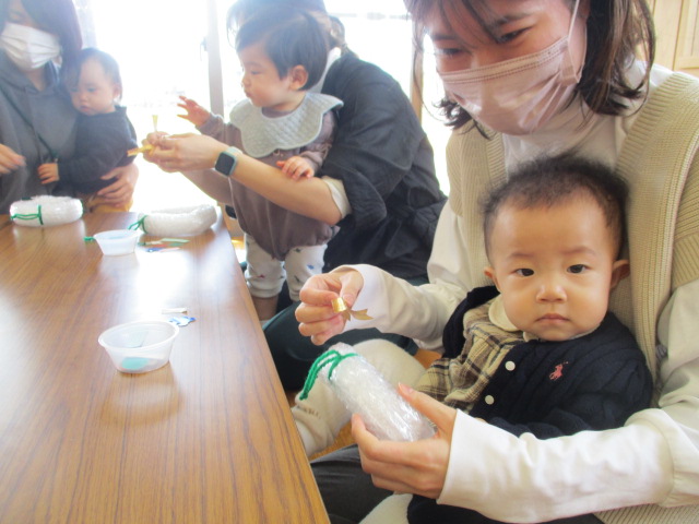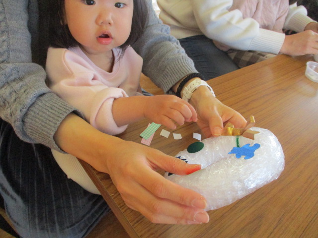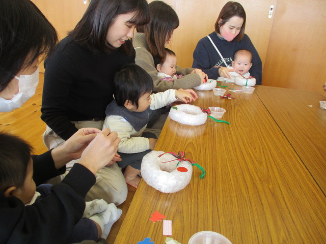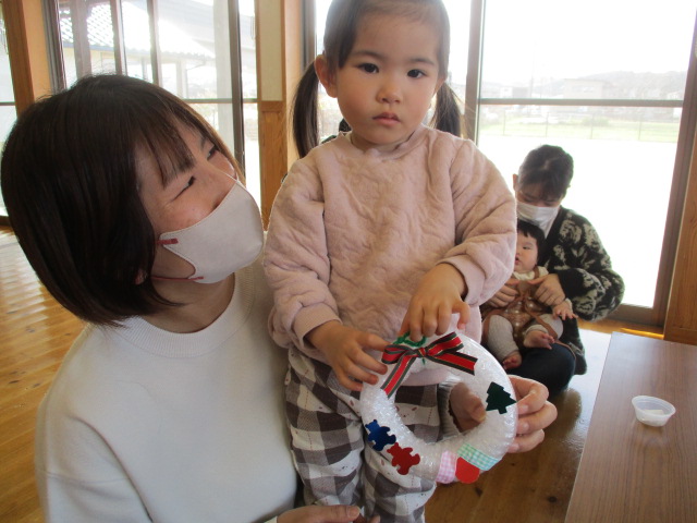リボンや型抜きしたもみの木などを貼り付けて、リースを作りました。クリスマスを楽しみに、お家に飾ってもらえたら嬉しいです♪
