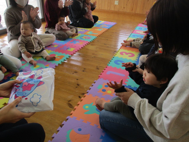 今日は、10.11.12月生まれの誕生日会をしました。一人ひとりのお子さんにお歌のプレゼントをしたり、紙しばいを見たりしました♪これからもすくすく大きくなりますように。