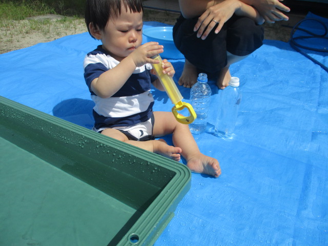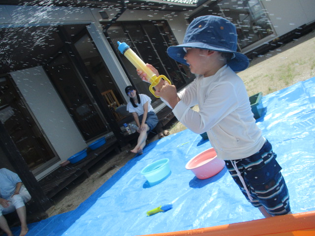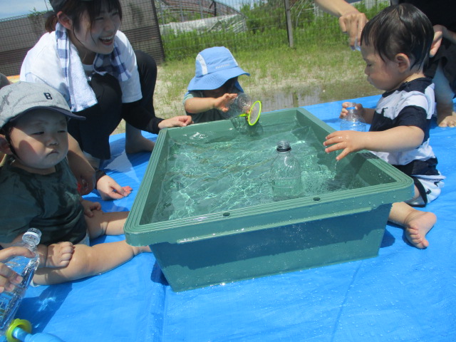 今日は、水あそびをしました。水鉄砲で遊んだり、おもちゃすくいをしたりしました。暑さに負けず、元気いっぱい遊んだ子どもたちでした。