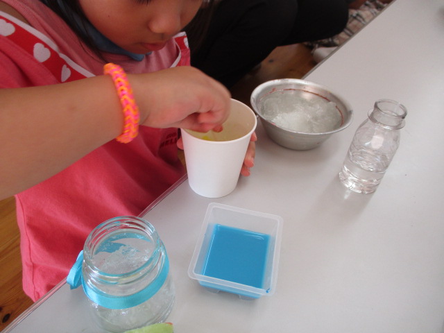 今日は、保冷剤を使ってフレグランスポット作りをしました。