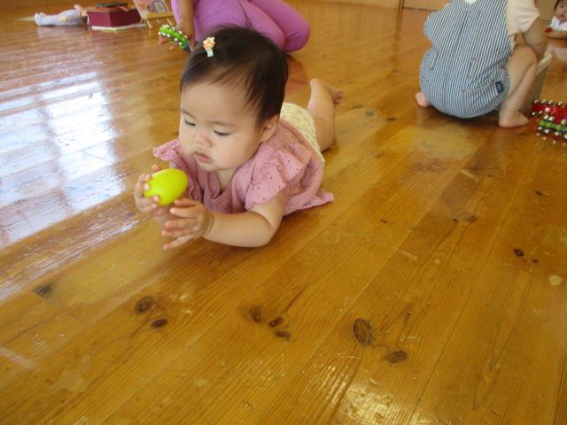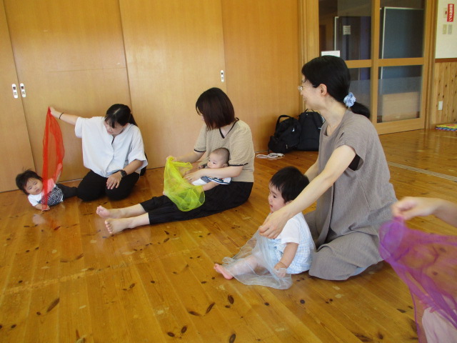今日は、音遊びを教えて下さる出川さんをお招きしました。リズムに合わせて体を動かしたり、鈴に触れてみたりと、普段なかなか体験することができない遊びを楽しむことができました。笑顔いっぱいの時間になりましたよ。