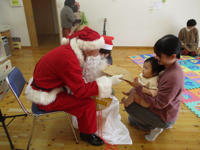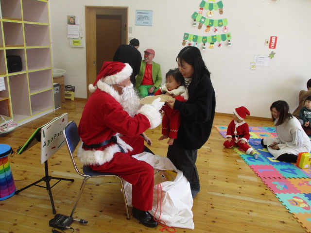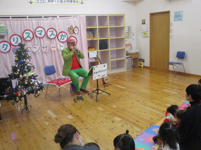 アゴパッチさんをお招きし、クリスマス会をしました。ハーモニカの音色を初めて聴いたり、サンタさんに初めて会ったり…。子どもたちにとって、初めてがいっぱいのクリスマス会になりました。楽しいひと時を過ごしましたよ♪