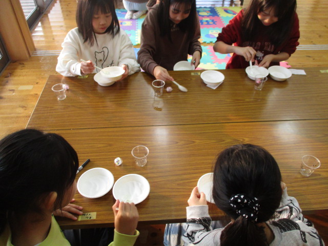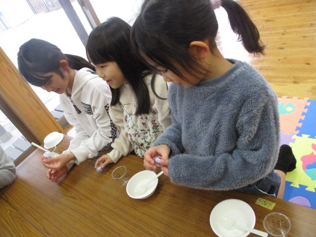 今日は三島由衣さんを講師にお招きし、バスボム作りをしました。実際に自分たちで作ってみると、案外難しかったようで…。難しいながらも最後まで作り上げると「かわいー!」「やったー!」と大喜び。今日のお風呂タイムを楽しみにする子どもたちでした。