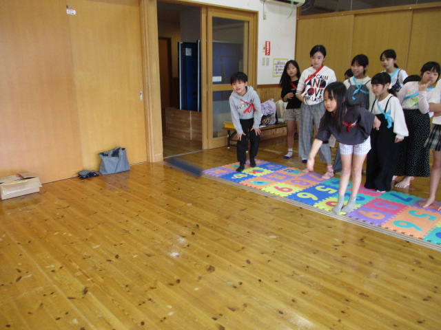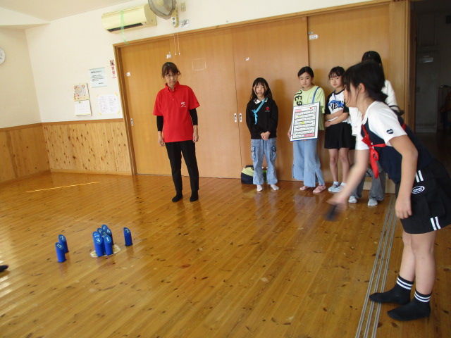教えてもらいながら、モルックを投げるのがどんどん上手になっていく子どもたち。室内モルックの楽しさを味わうことができました。松江スポーツ推進員の皆さんには、2日間ご指導とご協力をいただき、大変ありがとうございました。