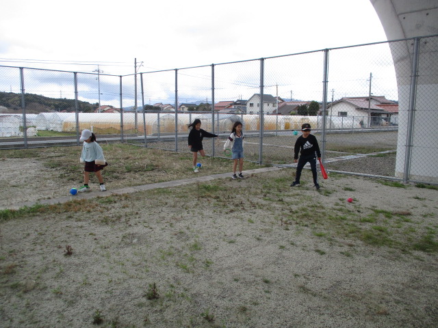 春休み最後の児童館活動は、広場遊びを行いました。野球、竹馬、フリスビーなど、色々な遊びを楽しむことができました♪