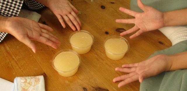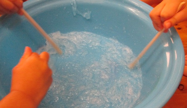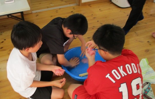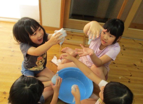 スライム作りをしました。友達と相談しながらスライムの材料を調節し、グループごとに好きな固さのスライムを完成させていました。出来上がったスライムの感触を楽しんでいましたよ♪