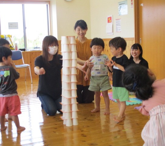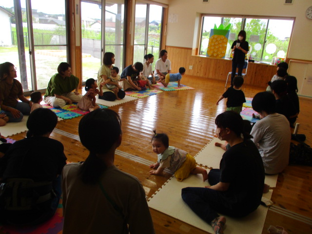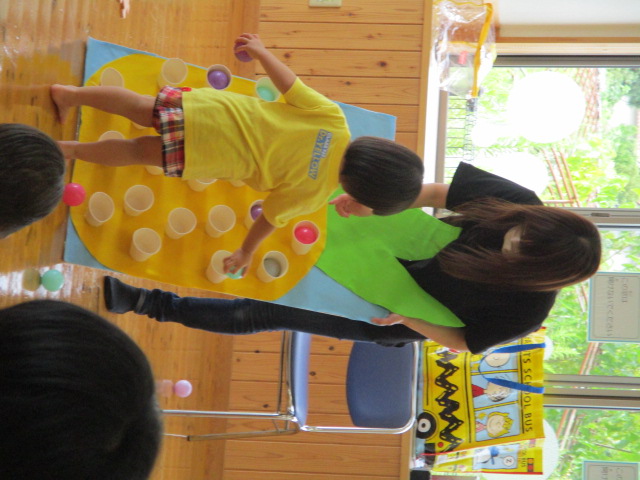 今日は、こっころ講師の犬山恵子先生をお招きし、英語遊びをしました。「キャベツの中から」や「幸せなら手をたたこう」を英語で歌ったり、パイナップルボードにカラーボールを入れたりして楽しみました♪親子で英語にふれる貴重な機会となりました。
