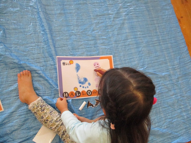 今日は、音遊びを教えてくださる出川さんをお招きしました。歌や音楽に合わせて手遊びをしたり体を揺らしたり…。また、足がたアートにも挑戦しました!音遊びの時間中、笑顔がいっぱいに広がりました♪