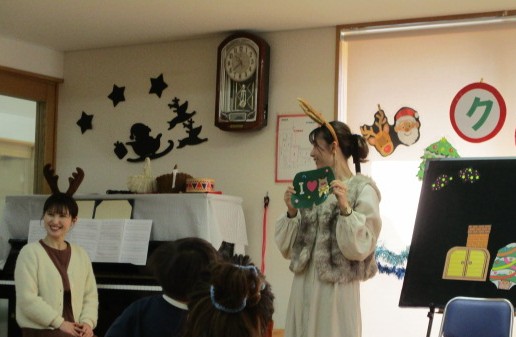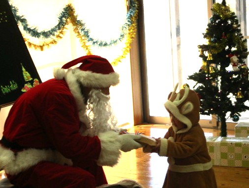 今日は、音楽絵本講師かなさんと絵本専門士まおさんのユニット、おとぶっくさんをお招きし、クリスマス会をしました。絵本やパネルシアター、ピアノの生演奏に合わせての歌遊び…盛りだくさんの内容に加えて、サンタさんも登場!子どもたちにとって、楽しい時間を過ごすことができました。かなさん、まおさん、そしてサンタさん、素敵なひとときをありがとうございました♪