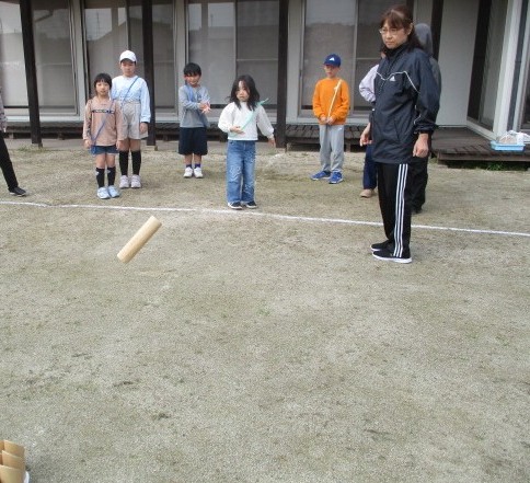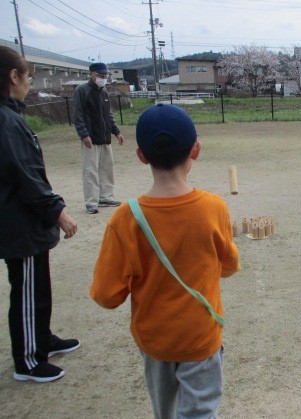 松江スポーツ推進員さんをお招きして館庭モルックをしました。教えてもらいながら、どんどん上手になっていく子どもたち。館庭モルックの楽しさを味わうことができました。推進員の皆さんにはご指導とご協力をいただき、大変ありがとうございました。