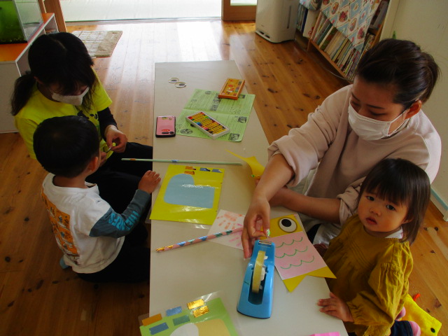 子育て支援事業・児童館活動ともにたくさんのお友達に参加いただきありがとうございました。製作や体を動かす遊びなど一緒に楽しく過ごしました。5月もまた一緒に遊ぼうね。