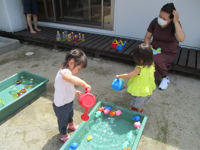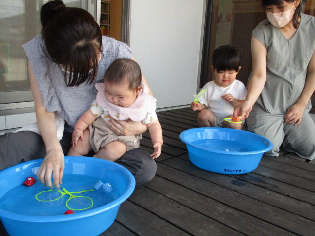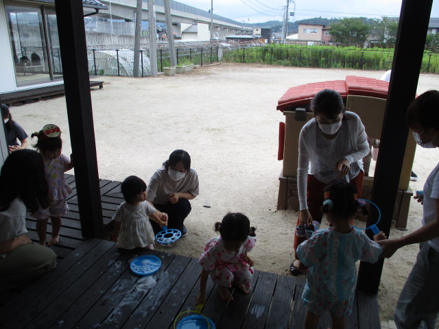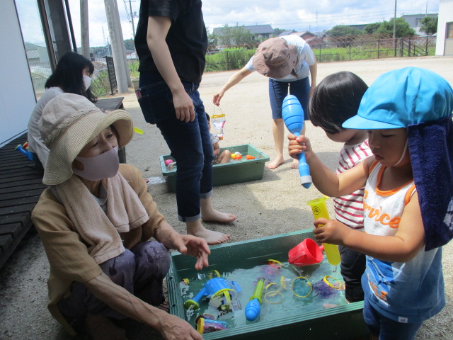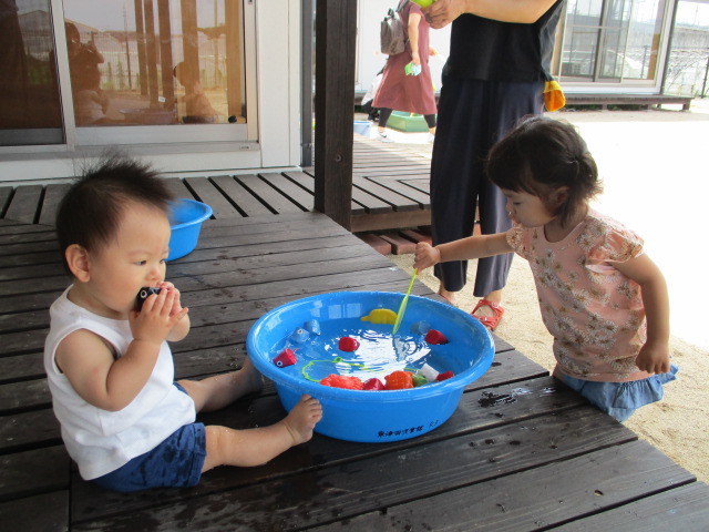 先週は悪天候が続き中止になった行事もありましたが、今週はお天気に恵まれて、”いちごたいむ”では夏の遊びを楽しみましたよ。 来週から児童夏休み対応期間に入り”いちごたいむ”と”みかんたいむ”の行事はお休みになります。また9月からの行事を楽しみに待っててくださいね。