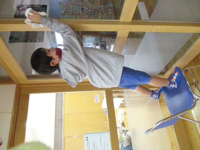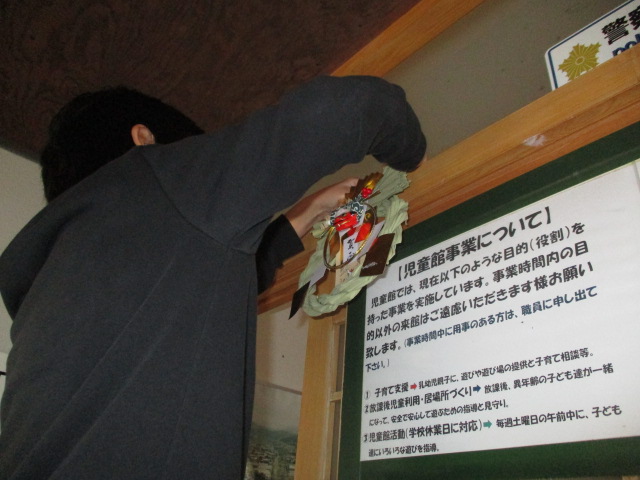 今日は、来館してくれた児童と職員で大掃除をしました。児童館の大きな窓を手分けしてきれいにしてくれました。最後に玄関にしめ縄を飾って新年を迎える準備を終えました。また来年も楽しく遊ぼうね。