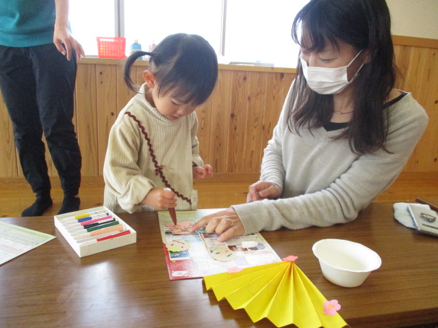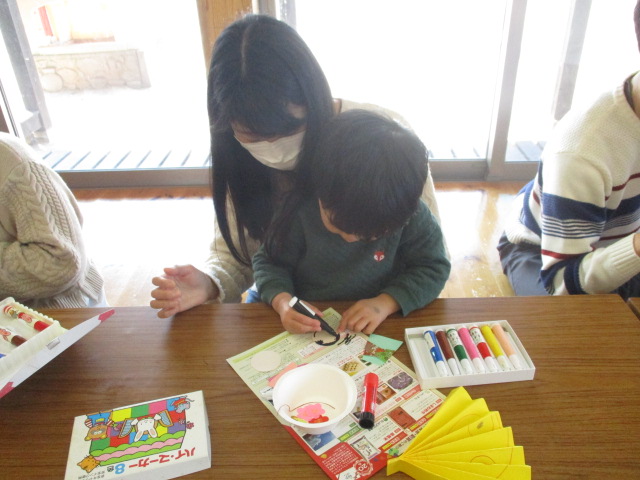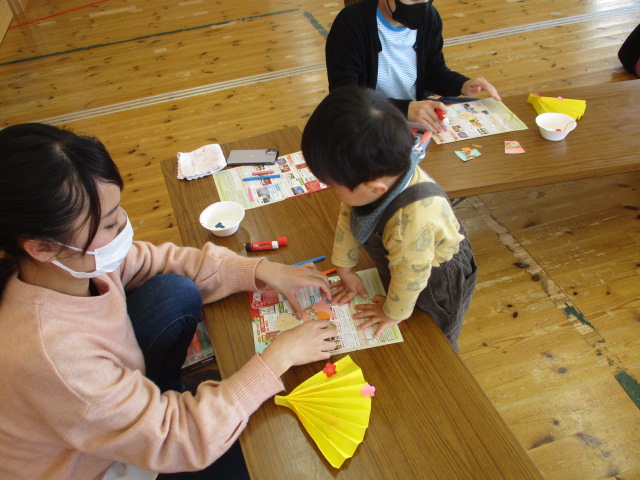 屏風に絵を描き、蛇腹に折って、おひな様に顔を描き、糊でパーツを貼って完成‼自分だけの可愛いおひな様ができました。