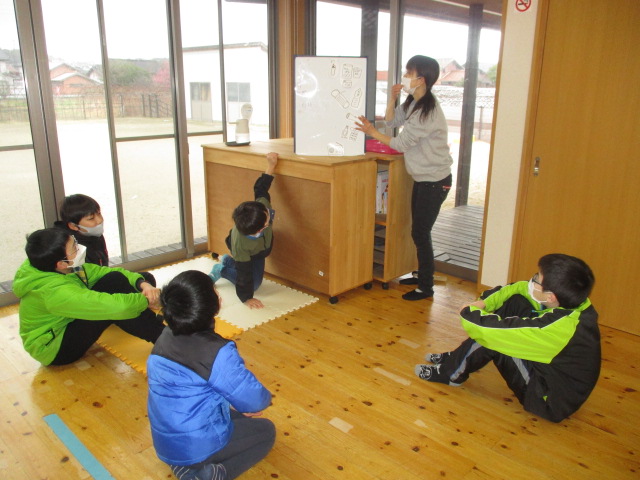 避難の時に持ち出す物の準備物は何があるかを皆で話し合いました。