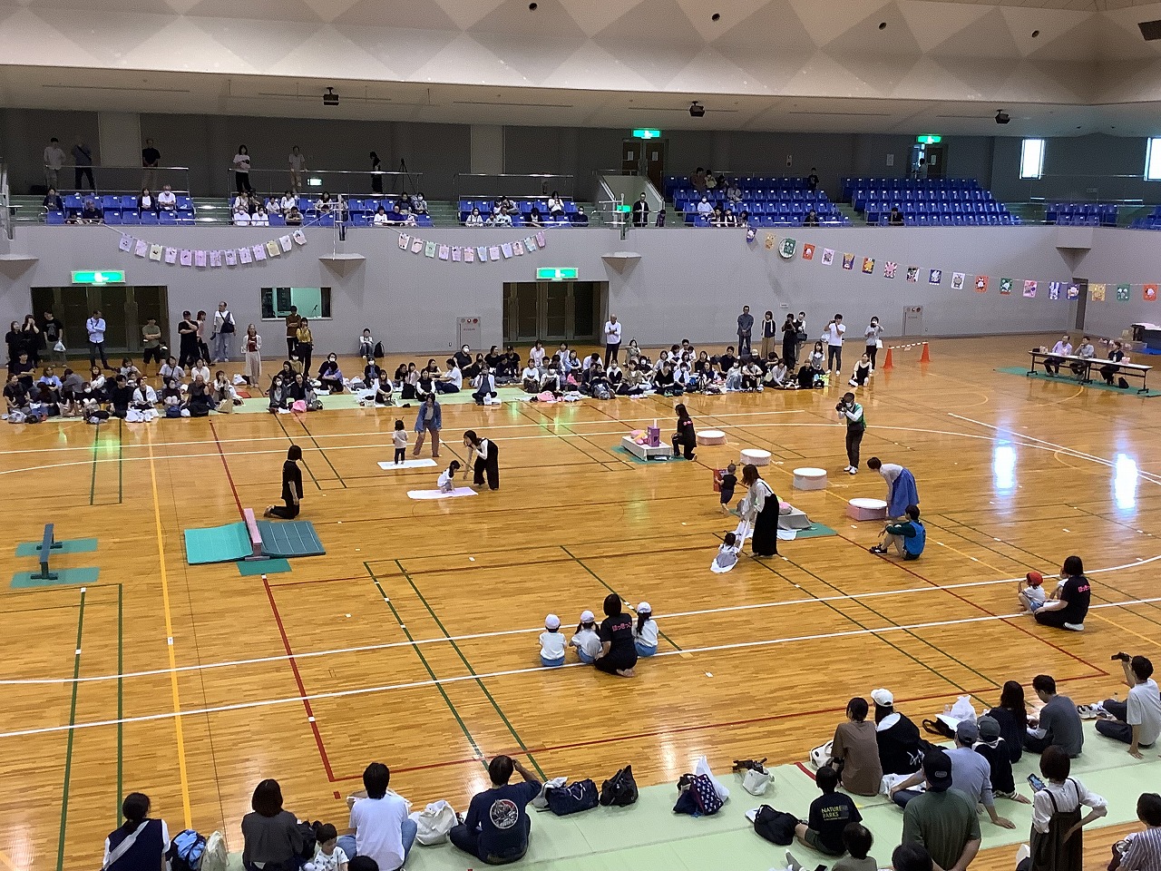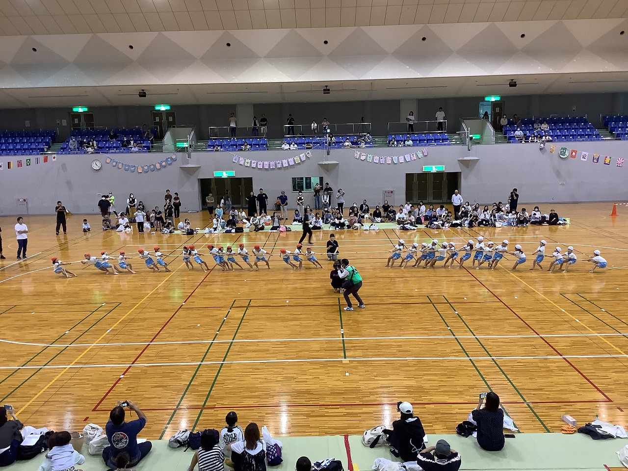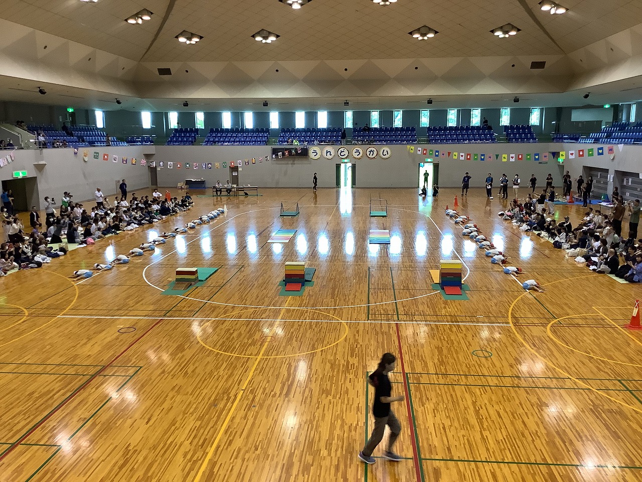 大きな体育館にドキドキ・ワクワクする中、どのクラスも「がんばるぞ!」の気持ちで頑張っていました。