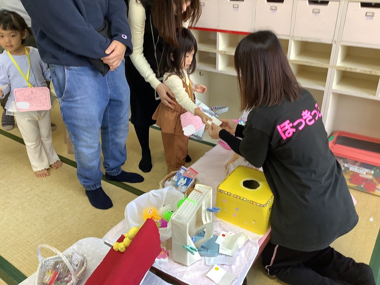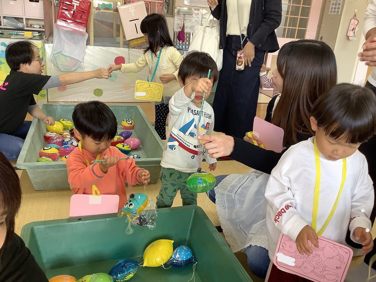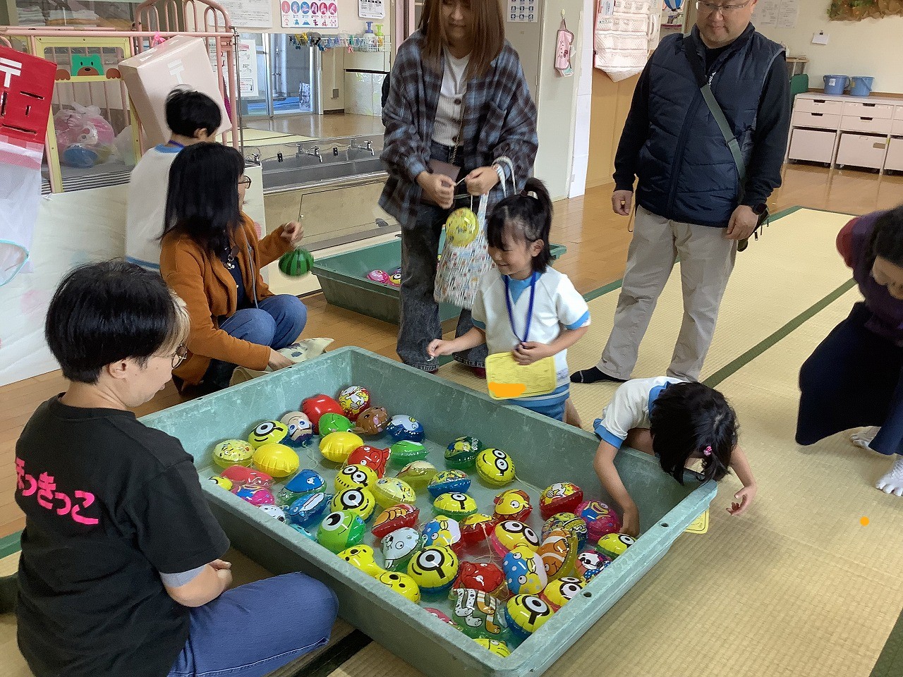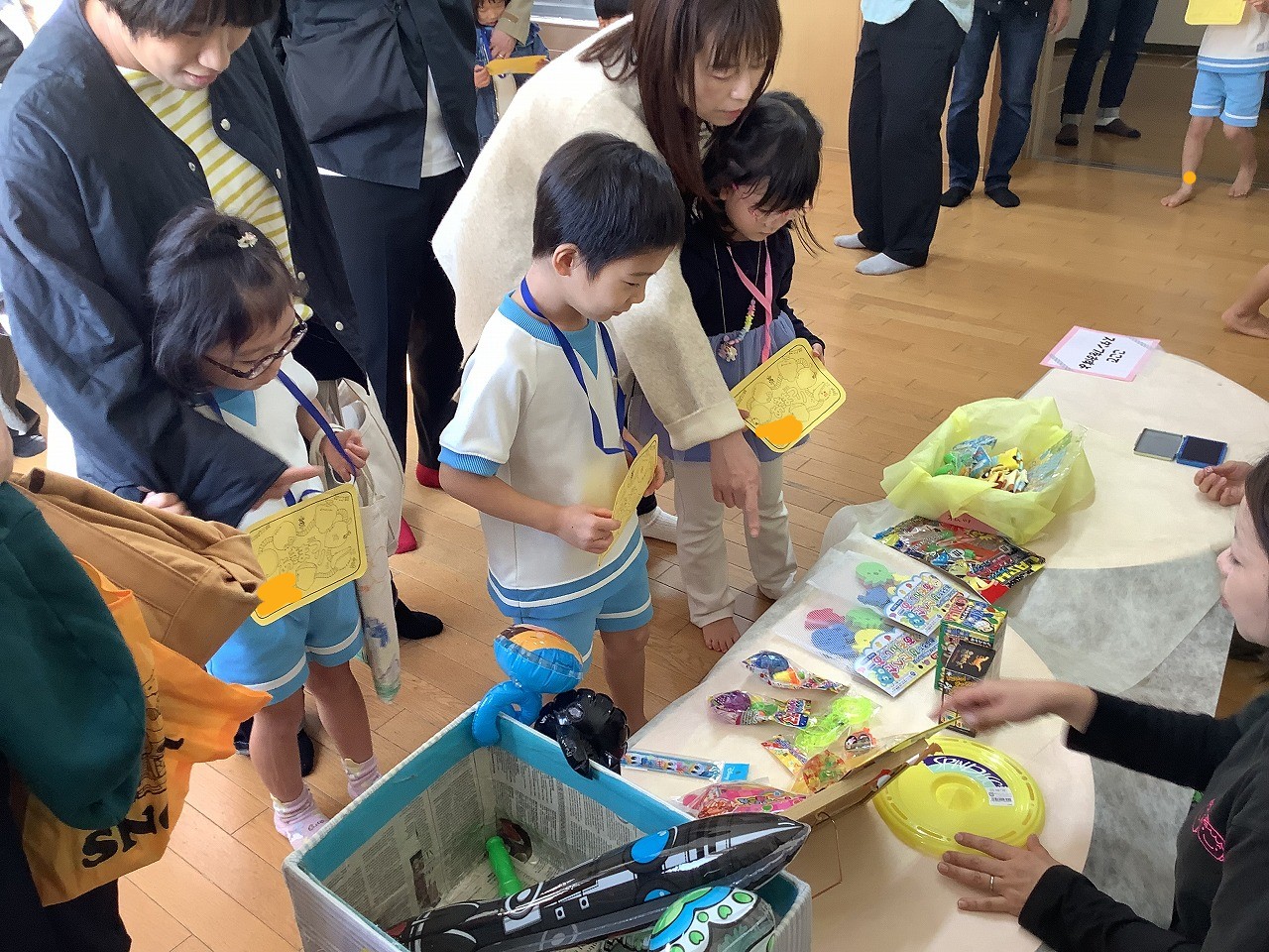 あてくじ、ヨーヨーつり、おもちゃすくい、おかしすくい、まとあて、わなげ、ワニワニぱにっく等のたくさんのコーナーを親子でまわり、楽しい時間を過ごしました。