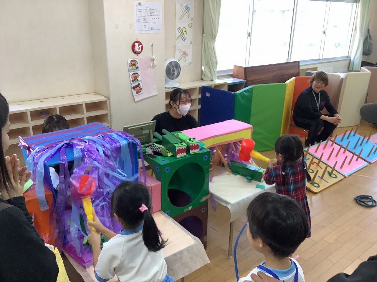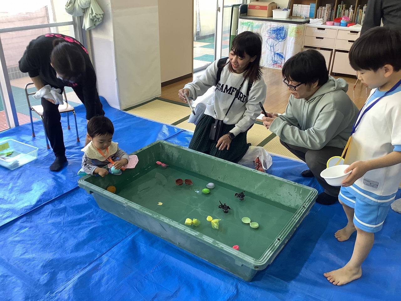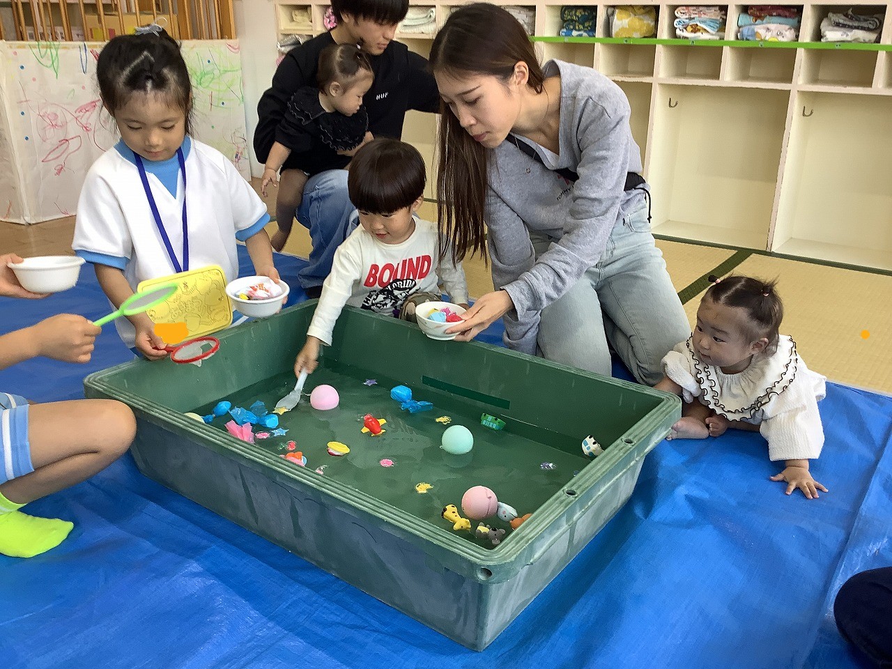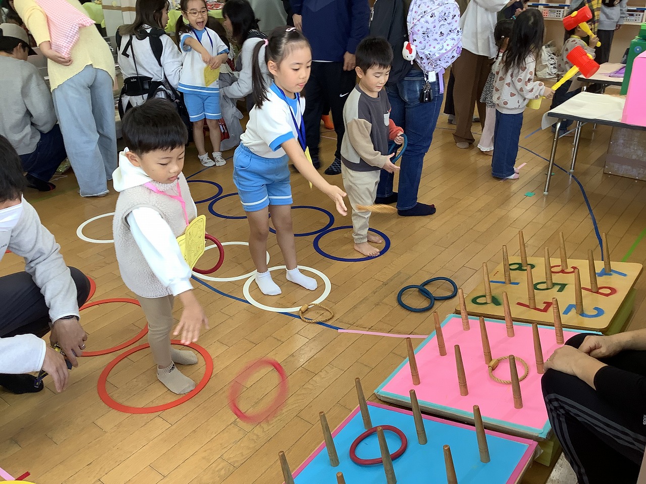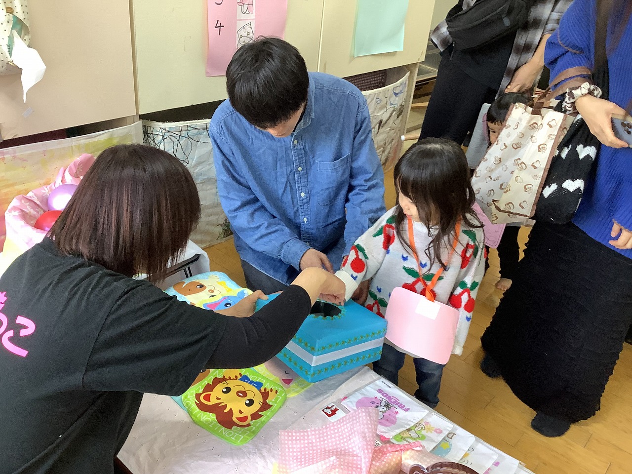 あてくじ、ヨーヨーつり、おもちゃすくい、おかしすくい、まとあて、わなげ、ワニワニぱにっく等のたくさんのコーナーを親子でまわり、楽しい時間を過ごしました。