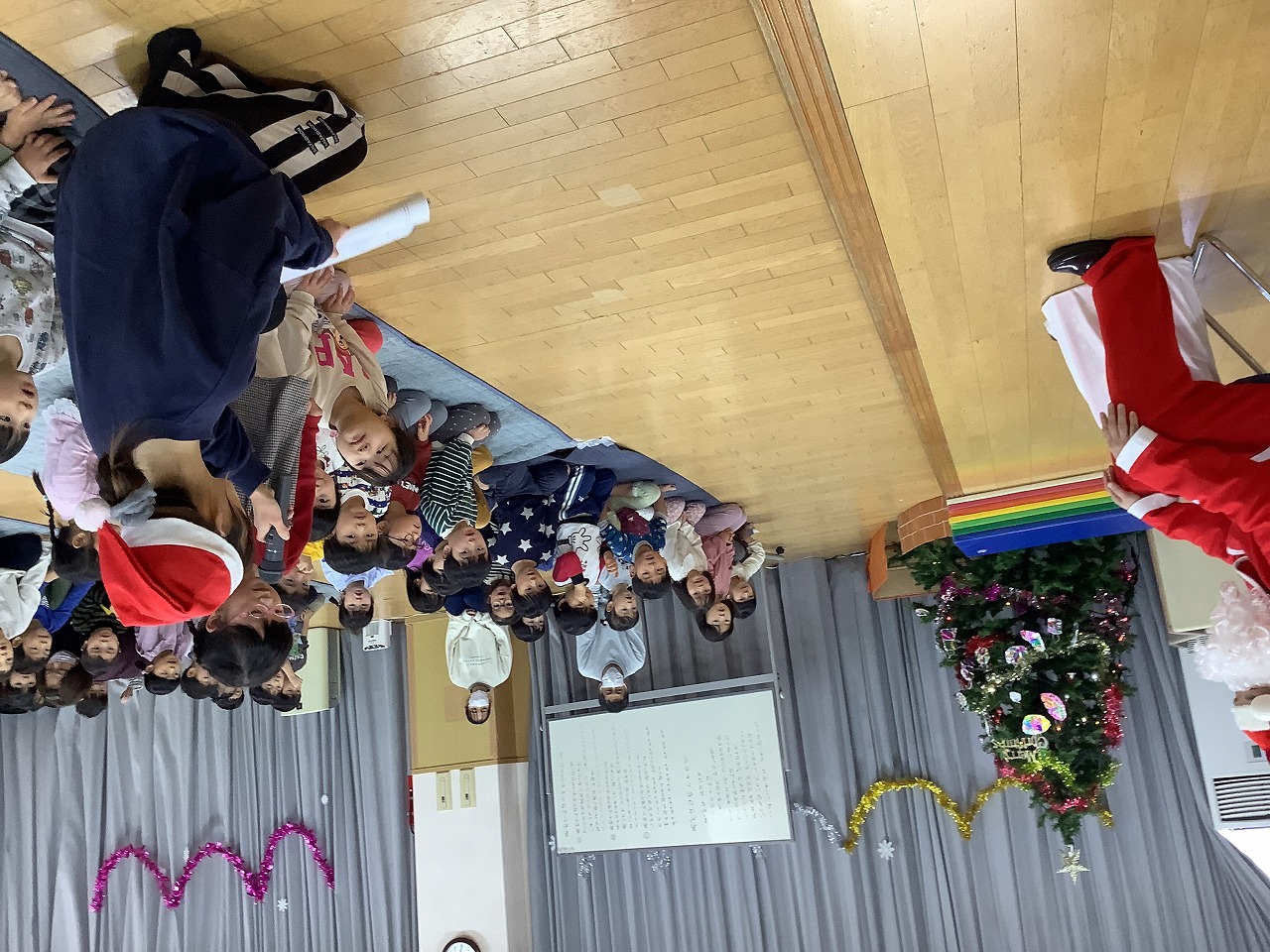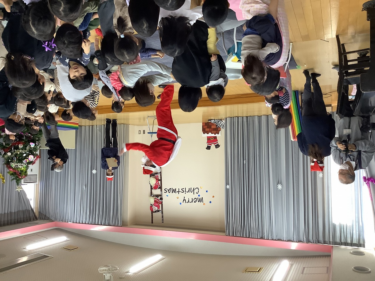 今日は子どもたちがとっても楽しみにしていたクリスマス会でした。「サンタさん来るかなぁ」と会が始まる前からドキドキワクワクしている呟きが聞こえてきましたよ。