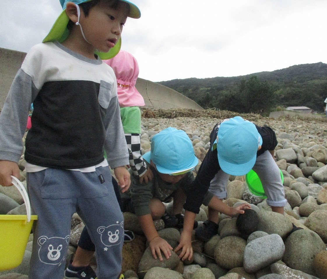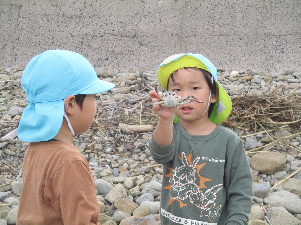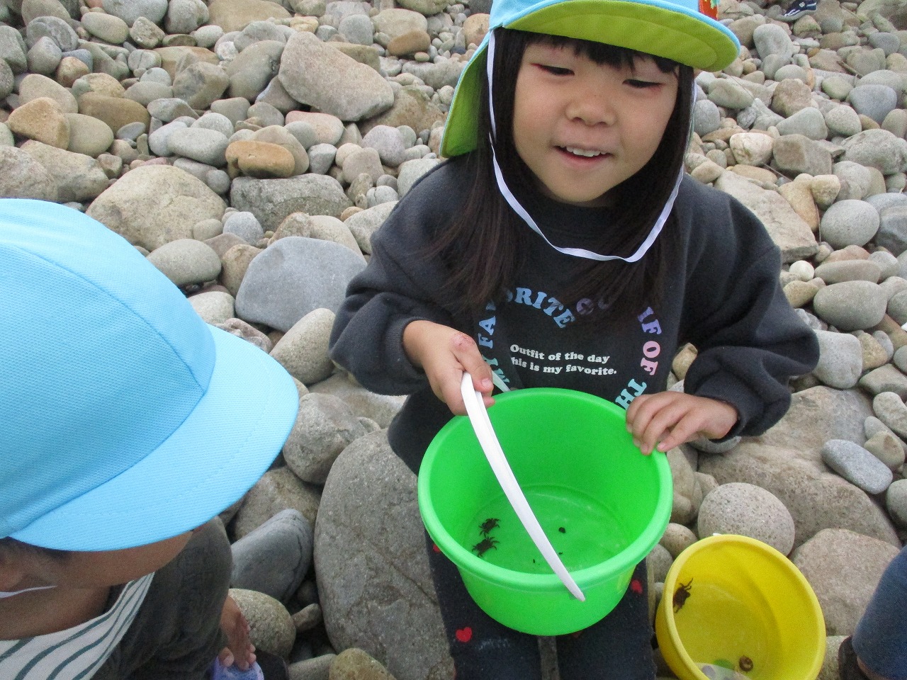 今回の海は波が穏やかでたくさんのカニが見つかりました。産卵期のようで「赤ちゃんのカニがいっぱい!」と小さなカニを大切に観察していました。シーグラスや貝探しも楽しんでいましたよ。