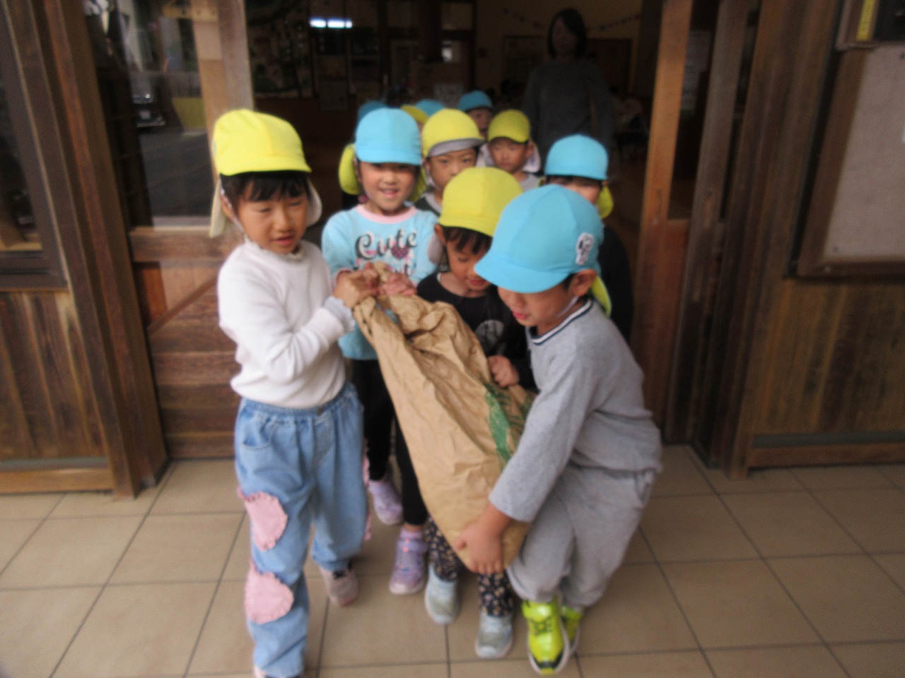 秋に収穫したお米をいるか・くじら組で精米してきました。「あしたは一緒に給食たべるんだよね!?」「あしたおとうさんやおかあさんがおいしいね!っていってくれるかな?」「はやくあしたにならないかな・・・」とつぶやく子ども達です。