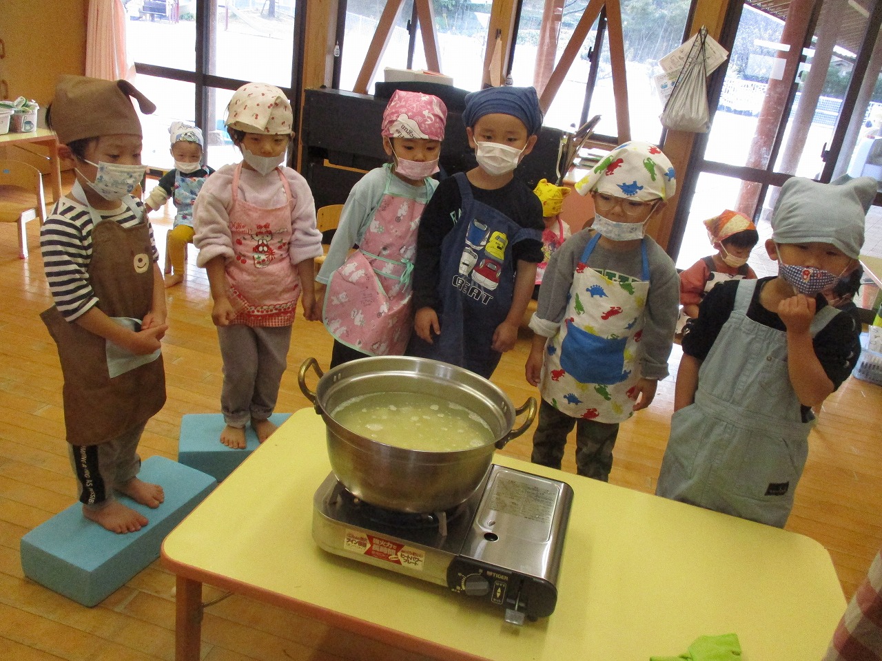 あ!お湯がぷくぷくしてきた