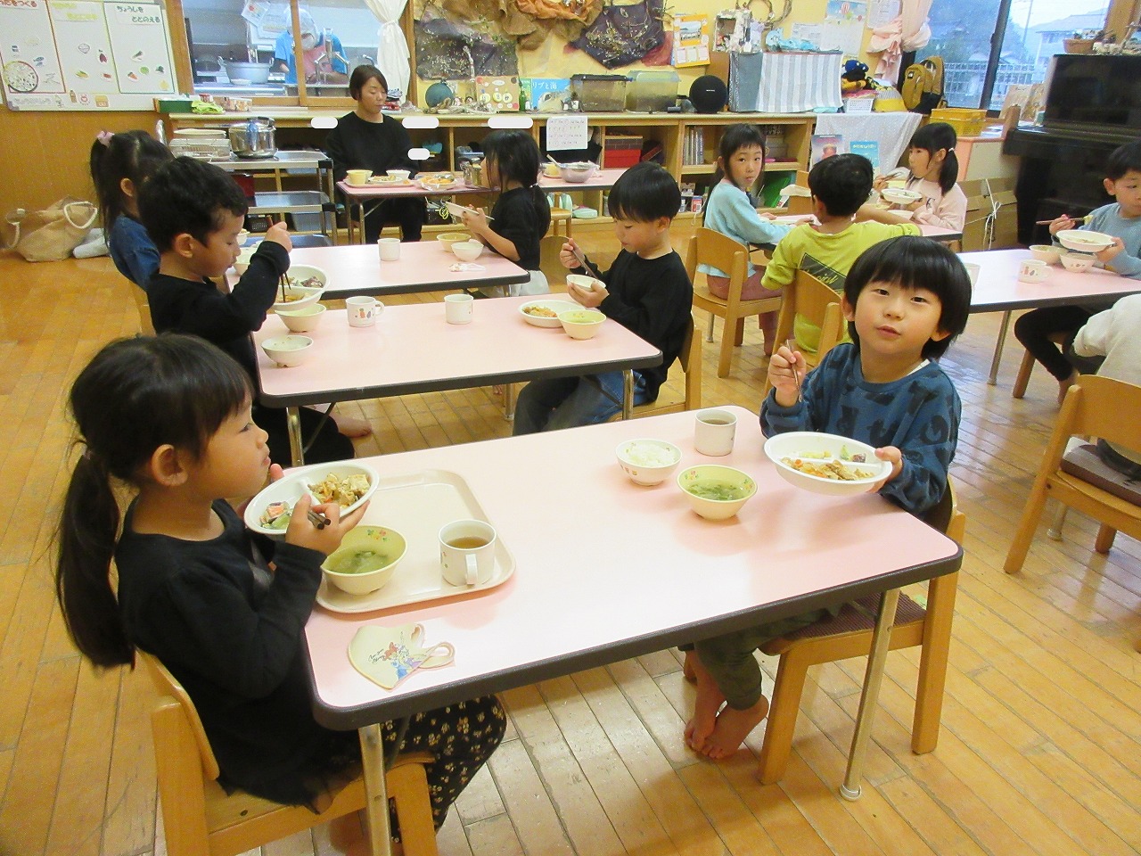 給食当番さんが盛りつけてくれました!「いただきま~す!!」