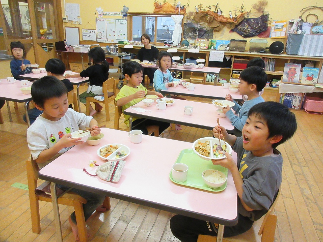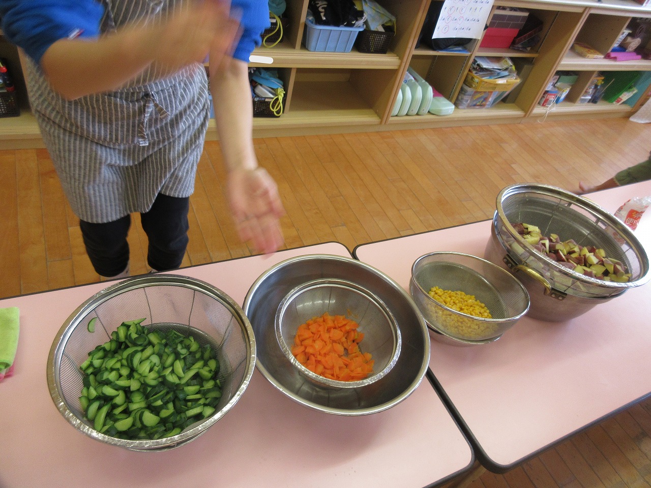 1品出来上がると「わ~!!やった!かんせい!!」「早く給食の時間にならないかな~」と楽しみにしている子ども達でした。